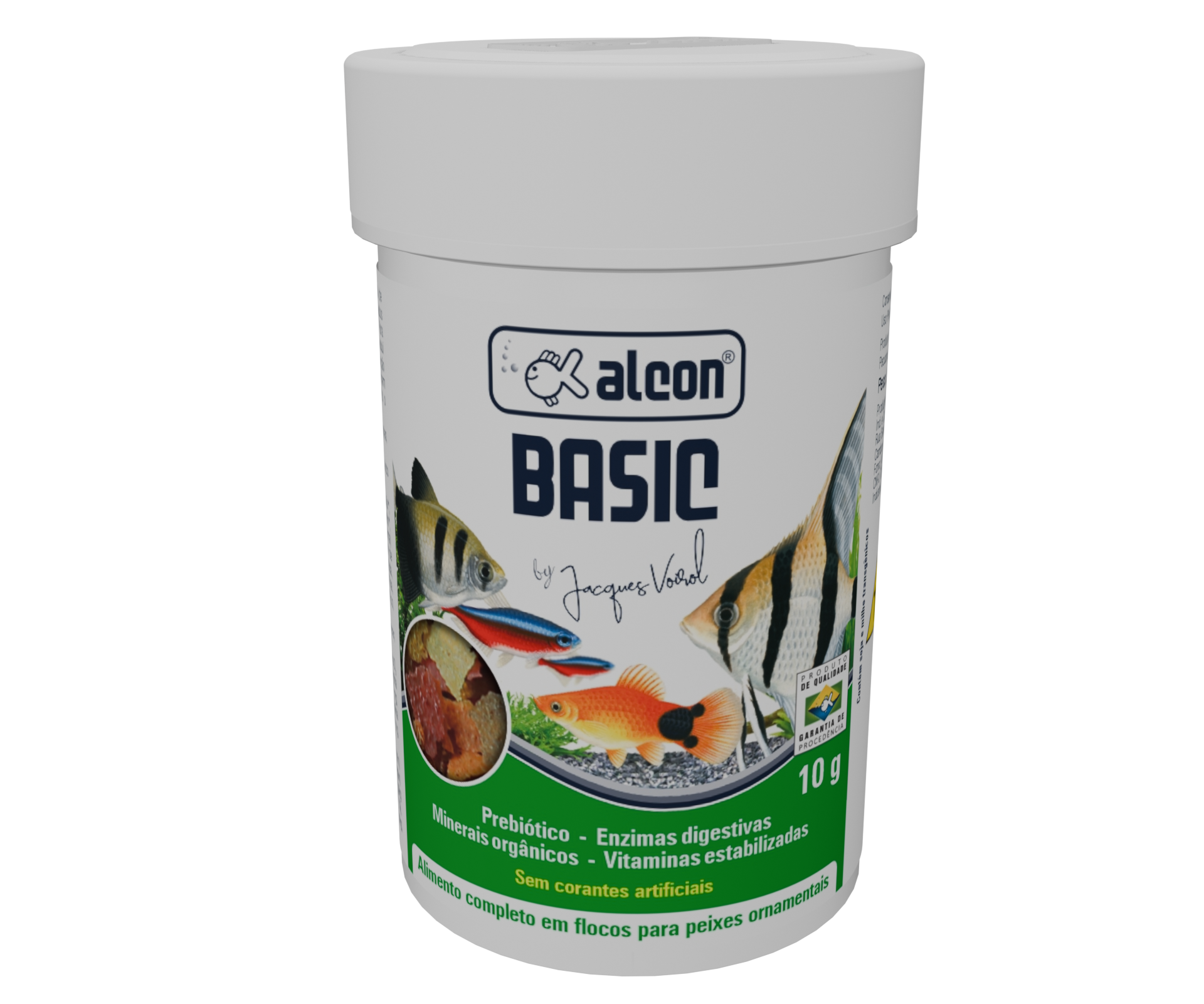 Alcon Basic foi elaborado especialmente para a grande variedade de peixes ornamentais. Ingredientes naturais e altamente selecionados tornam este alimento completo para uma nutrição de qualidade. Para maior biodisponibilidade dos minerais ao organismo dos peixes, possui em sua composição minerais orgânicos quelatados. Esta formulação especial também contém Enzimas Digestivas e Prebiótico, que favorecem o desenvolvimento da flora intestinal benéfica, melhorando o aproveitamento dos nutrientes. Não contém corantes artificiais.