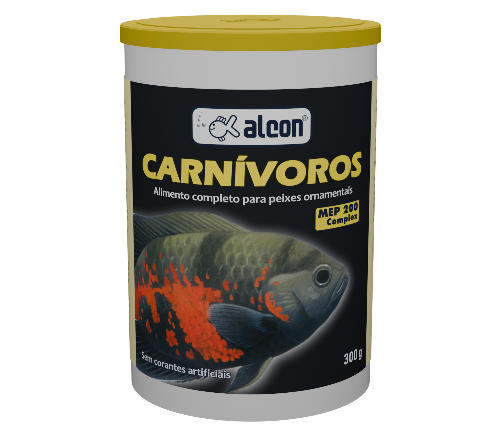 Alcon Carnívoros garante nutrição adequada aos peixes carnívoros de água doce, como Oscar e Aruanã, ou marinhos, como Lion Fish e Garoupas ornamentais. Contém um carotenoide natural, a astaxantina, que realça a coloração natural dos peixes. A formulação especial possui variada composição e ingredientes selecionados, com elevado teor de proteína e perfeito equilíbrio dos demais nutrientes. Além de Enzimas Digestivas, apresenta fonte de Nucleotídeos e Prebiótico, que favorecem o desenvolvimento da flora intestinal benéfica, melhorando o aproveitamento dos nutrientes. Tudo isto sem corantes artificiais.