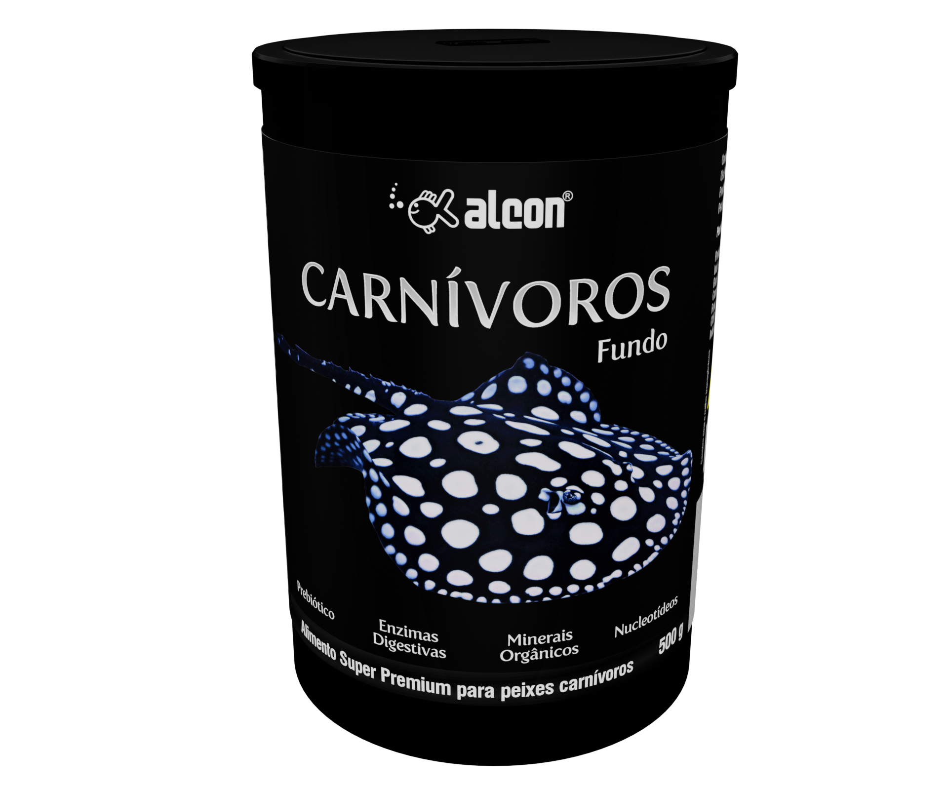 Alcon Carnívoros Fundo é um alimento completo Super Premium especialmente desenvolvido para peixes carnívoros que se alimentam no fundo dos aquários. O processo de extrusão garante densidade ao alimento para que chegue rapidamente ao fundo, enquanto o formato estimula a captura pelos peixes predadores. Ingredientes diferenciados, como lula e alho, garantem alta atratividade e grande palatabilidade a várias espécies de peixes como Arraia Negra, Jacundá, Pirarara e Pintado. Pode também ser oferecido para Bagre e outros peixes onívoros. Não contém corantes artificiais.
