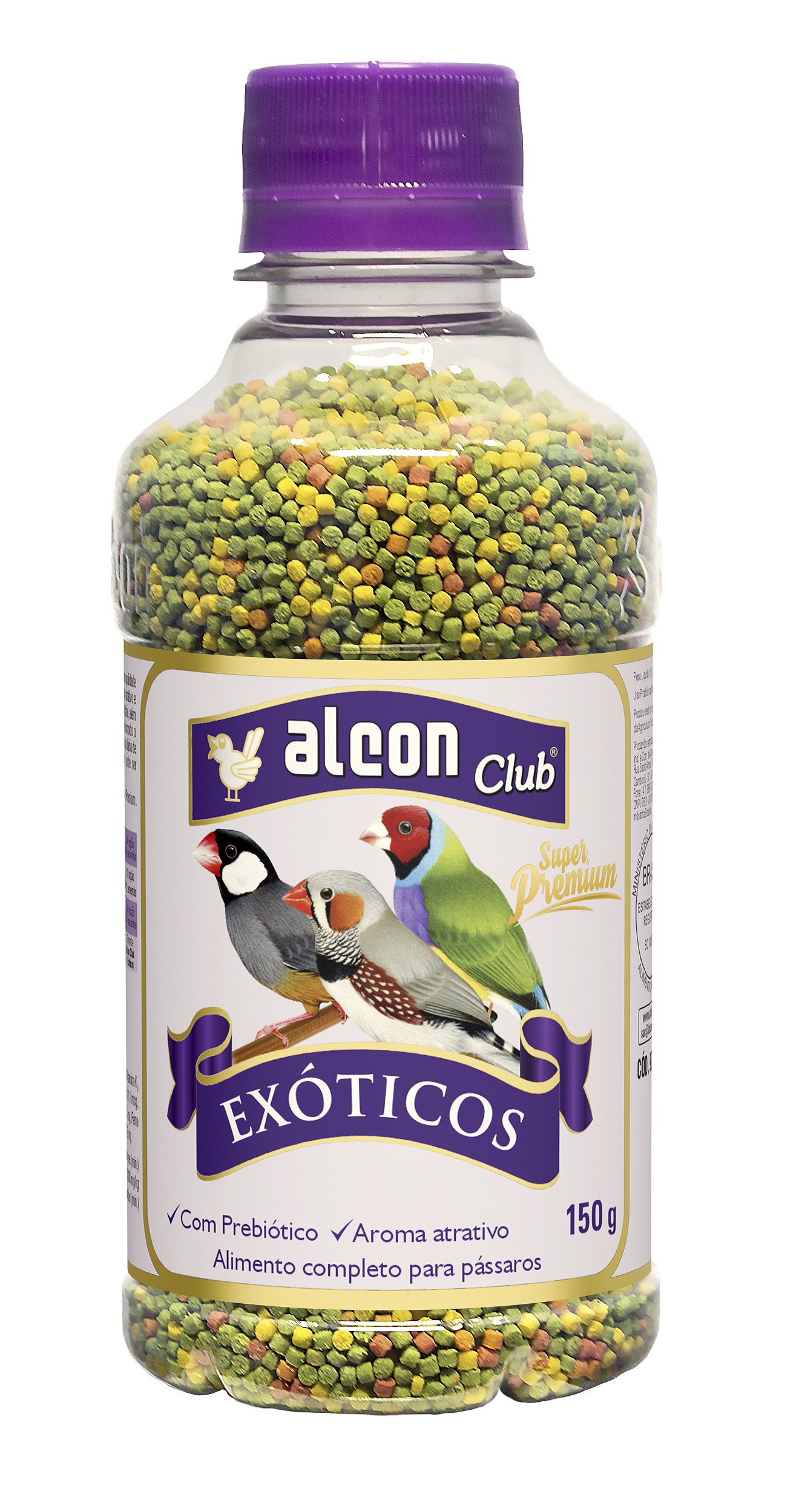 Alcon Club Exóticos Super Premium foi desenvolvido com ingredientes especiais para atender com altíssima qualidade as necessidades nutricionais de pássaros como Diamante de Gould, Mandarim, Manon e Calafate. É muito atrativo e apresenta alta digestibilidade, aroma agradável e sabor característico. Contém vitaminas e minerais de alto padrão, além de Prebiótico que promove o crescimento seletivo de bactérias benéficas presentes nos intestinos, melhorando o aproveitamento dos nutrientes. Contribui com a higiene e facilita o manejo, pois não há necessidade da rotina diária de limpeza dos comedouros, como ocorre com sementes e alimentos frescos. Sendo assim, o alimento pode ser fornecido para vários dias. Nos períodos de reprodução e muda de penas, acrescente à dieta Alcon Club Farinhada Canários Super Premium. Conheça também a linha de suplementos Labcon Club.