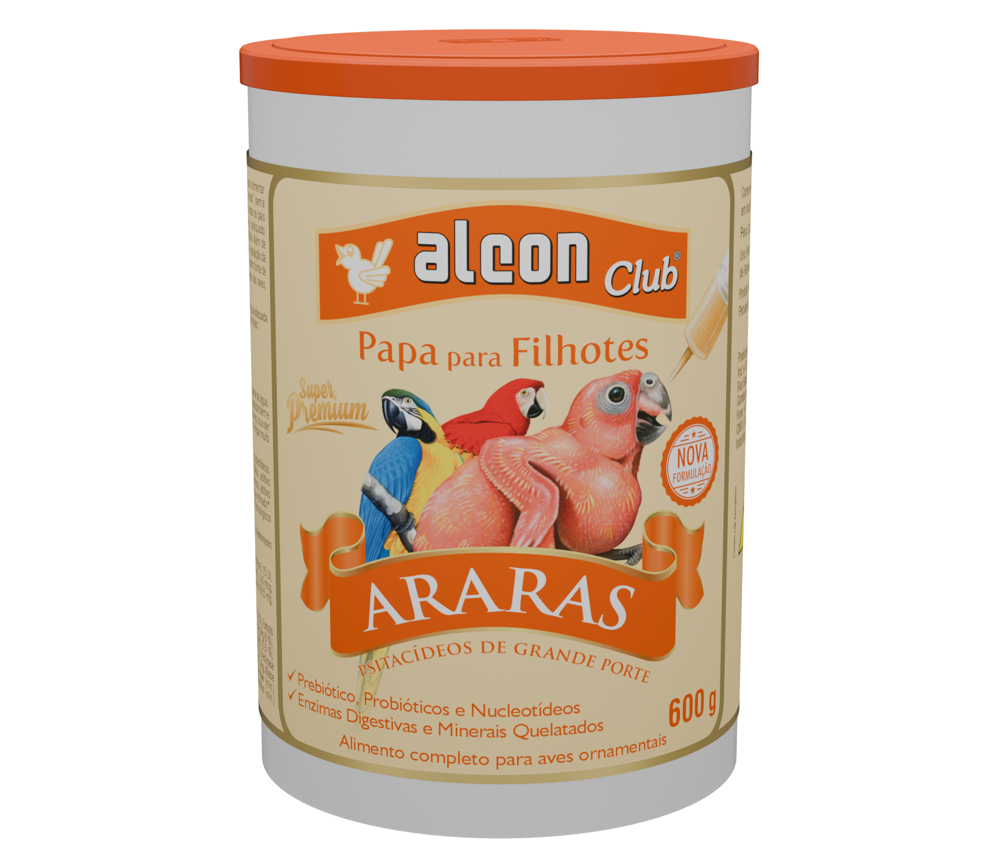 Alcon Club Papa para Filhotes Araras Super Premium foi especialmente desenvolvido para alimentar filhotes de Araras e outros Psitacídeos de grande porte. Indicado para a criação de filhotes “na mão”, sem a participação dos pais, bem como para a suplementação de pais e filhotes em sistemas onde os pais participam da criação. Altamente nutritivo e completo, contém enzimas digestivas, adequado balanceamento de nutrientes e uniformidade na textura, o que confere excelente digestibilidade. Além de vitaminas e minerais, o alimento é enriquecido com Prebiótico e Probióticos que favorecem a instalação da flora intestinal benéfica aos filhotes, responsável pela melhoria na absorção de nutrientes. Contém fonte de Nucleotídeos, que aceleram o desenvolvimento do trato gastrointestinal e glândulas anexas das aves, antecipando a capacidade ideal de aproveitamento dos alimentos.