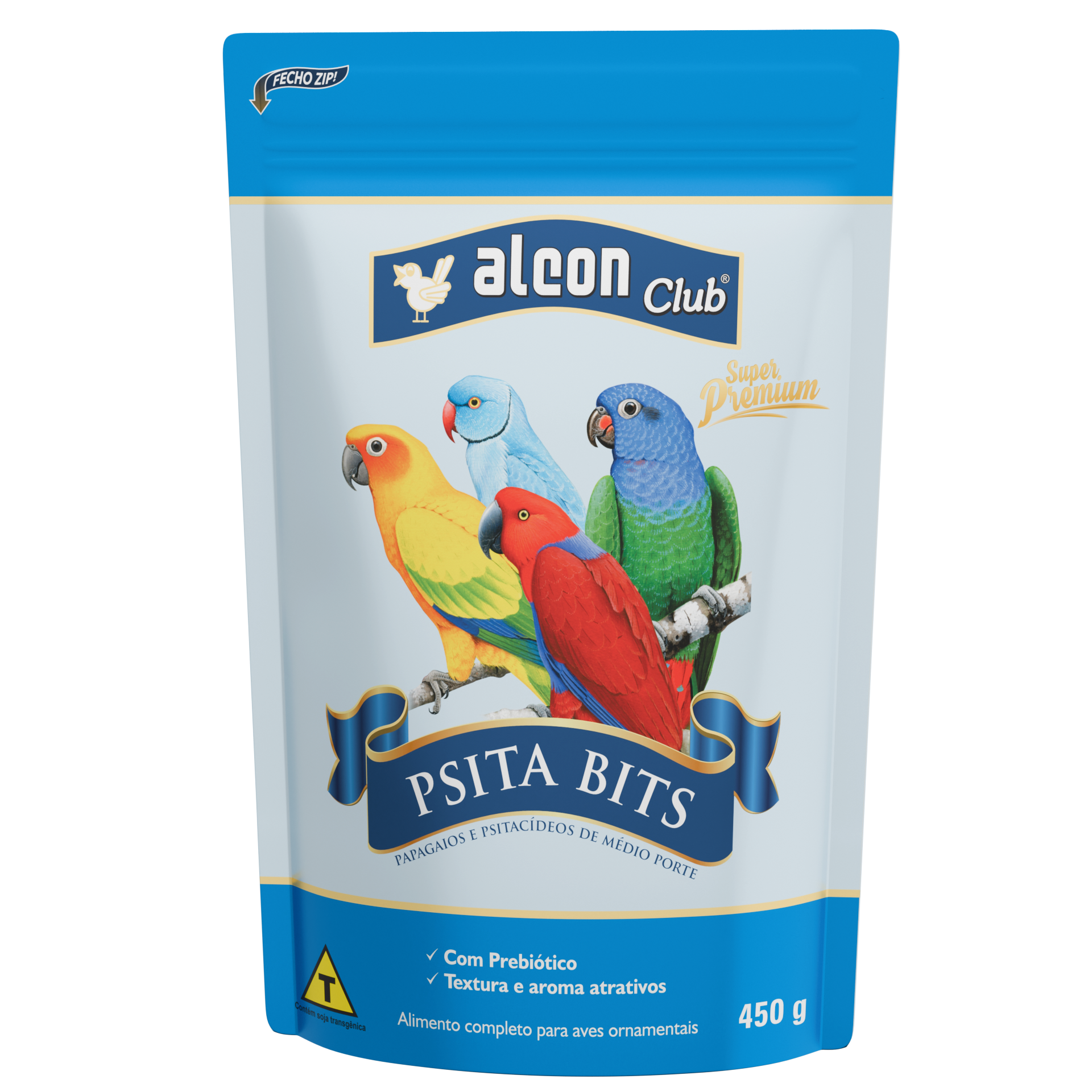 Alcon Club Psita Bits Super Premium é um alimento extrusado completo especialmente desenvolvido para Papagaios e Psitacídeos de médio porte como Jandaias, Maritacas, Ring Necks e Eclectus. O formato foi elaborado especialmente para estimular a manipulação pelas aves, reproduzindo a situação encontrada na natureza. Sua formulação especial contém vitaminas, minerais e Prebiótico, que promove o crescimento seletivo de bactérias benéficas presentes nos intestinos, melhorando o aproveitamento dos nutrientes. Adequadamente balanceado e rico em nutrientes, apresenta textura e aroma atrativos, que estimulam a aceitação e promovem melhor aproveitamento do alimento pelas aves. Contribui com a higiene e facilita o manejo, pois não há necessidade da rotina diária de limpeza dos comedouros, como ocorre com sementes e alimentos frescos. Sendo assim, o alimento pode ser fornecido para vários dias. Nos períodos de reprodução e muda de penas, acrescente à dieta Alcon Club Farinhada 24-PB Super Premium ou Alcon Club Farinhada Psitacídeos Super Premium. Conheça também a linha de suplementos Labcon Club.