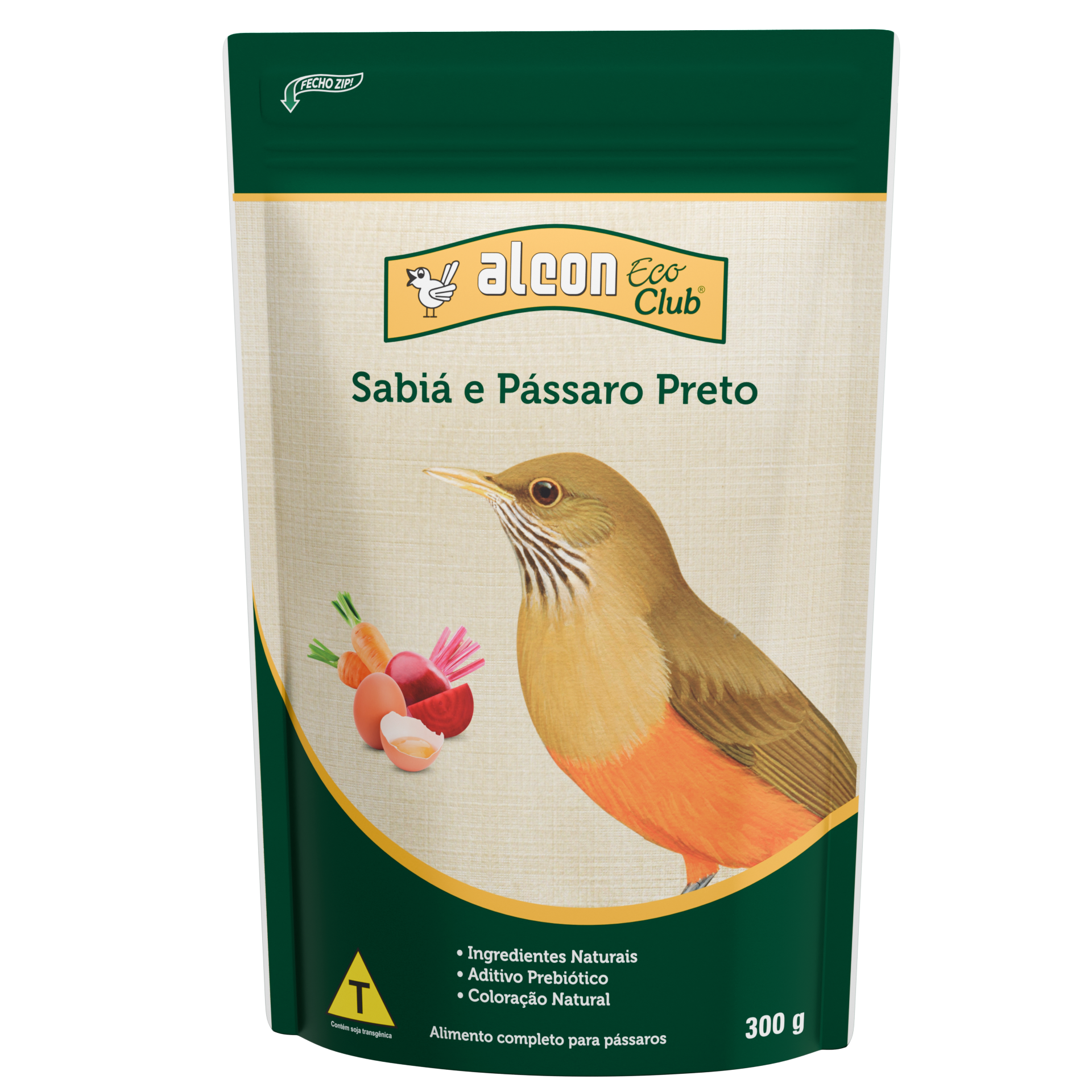 Alcon Eco Club Sabiá e Pássaro Preto é um alimento extrusado completo para esses pássaros frugívoros. Apresenta uniformidade nutricional em cada grânulo, a partir de ingredientes naturais como maçã, ovo, beterraba e cenoura. Contém aditivo prebiótico, que favorece o desenvolvimento da flora intestinal benéfica, melhorando o aproveitamento dos nutrientes. Não são usados corantes artificiais.