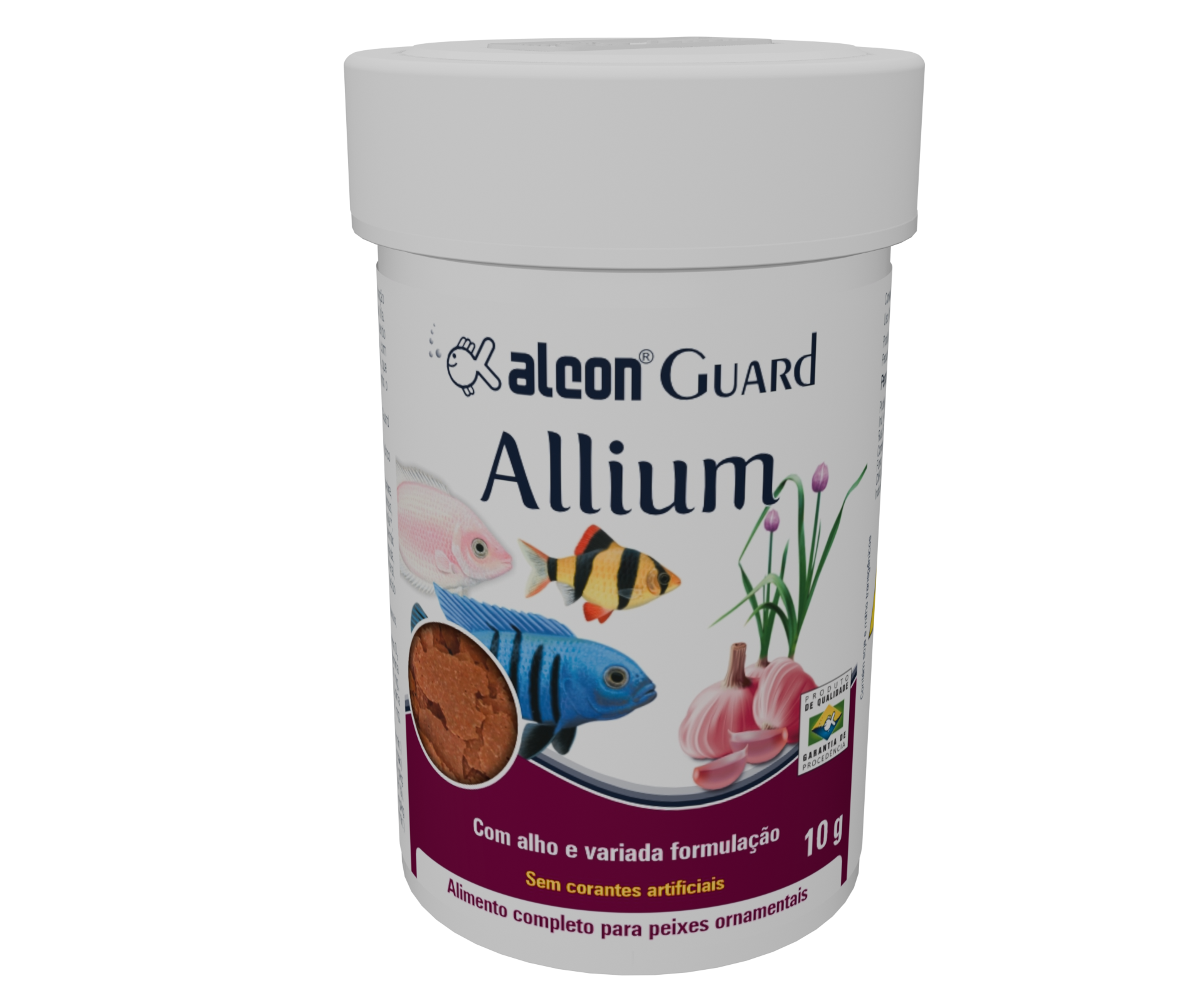 Alcon Guard Allium é um alimento especial, com uma formulação exclusiva elaborada para peixes ornamentais tropicais e de água fria. Conta com os benefícios do alho e uma formulação variada, sendo indicado para a manutenção rotineira do aquário em associação com outros alimentos completos. Contém Enzimas Digestivas e Prebiótico, que favorecem o desenvolvimento da flora intestinal benéfica, melhorando o aproveitamento dos nutrientes. Não contém corantes artificiais.