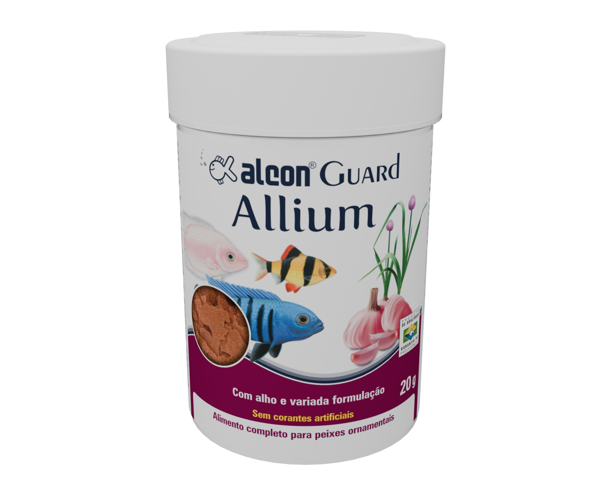 Alcon Guard Allium é um alimento especial, com uma formulação exclusiva elaborada para peixes ornamentais tropicais e de água fria. Conta com os benefícios do alho e uma formulação variada, sendo indicado para a manutenção rotineira do aquário em associação com outros alimentos completos. Contém Enzimas Digestivas e Prebiótico, que favorecem o desenvolvimento da flora intestinal benéfica, melhorando o aproveitamento dos nutrientes. Não contém corantes artificiais.