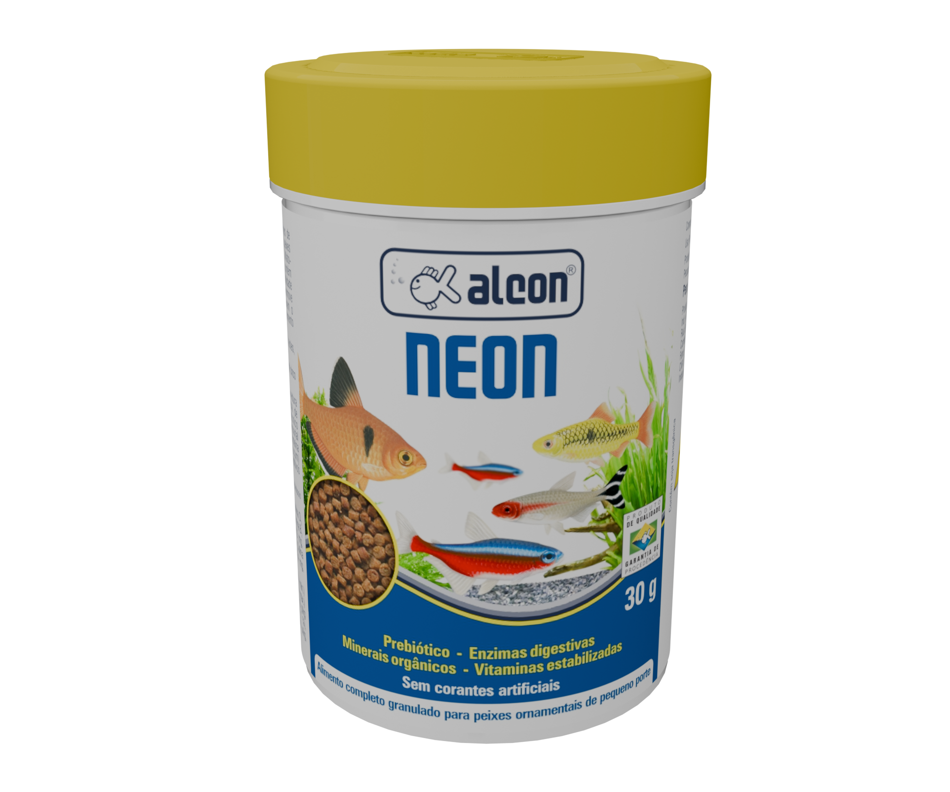 Alcon Neon foi elaborado com grande variedade de ingredientes de qualidade, para realçar as cores e garantir nutrição de qualidade aos peixes de pequeno porte como Neon, Rodóstomo, Tanictis, Paulistinha, Mato-Grosso, Ramirezi e Tetras. Seus pequenos e atrativos grânulos contém minerais orgânicos quelatados, que garantem maior biodisponibilidade dos minerais ao organismo, além do carotenoide astaxantina, que promove o realce das cores. Enzimas Digestivas e Prebiótico favorecem o desenvolvimento da flora intestinal benéfica, melhorando o aproveitamento dos nutrientes. Não contém corantes artificiais.