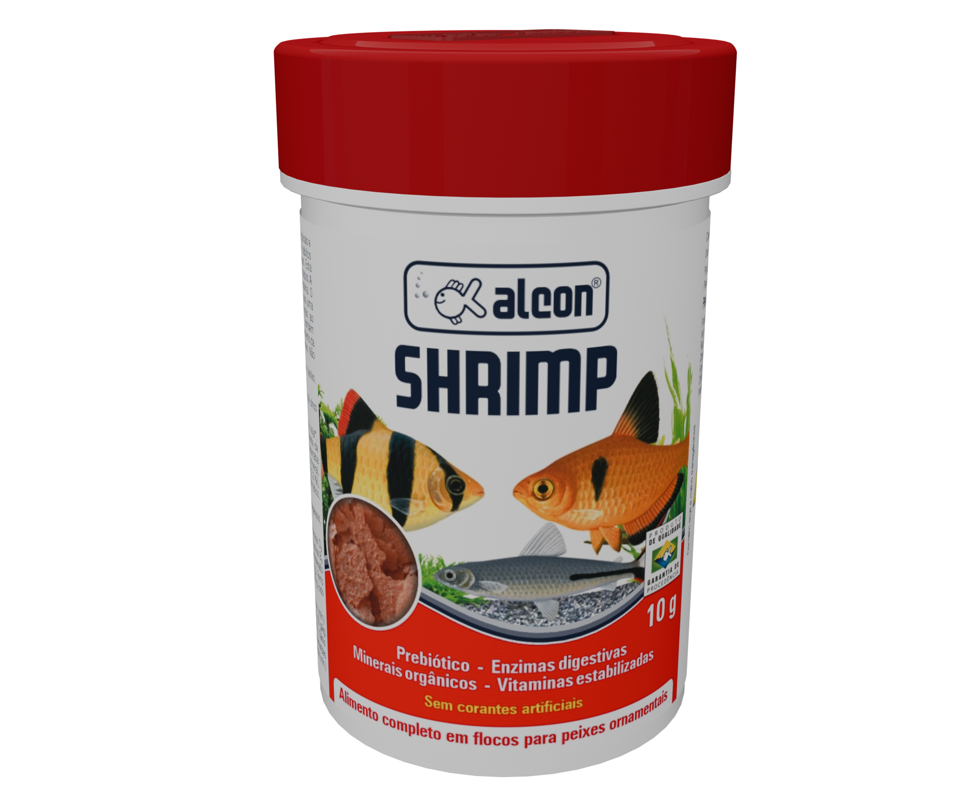 Alcon Shrimp foi elaborado especialmente para peixes ornamentais tropicais e marinhos. Muito atrativo, é altamente apreciado por peixes de hábitos carnívoros. Possui astaxantina que realça a cor natural dos peixes. Esta formulação especial contém ingredientes naturais e altamente selecionados. A presença de Camarão e Artemia garante elevado teor de proteína. O equilíbrio dos demais nutrientes tornam este alimento completo para uma nutrição de qualidade. Para maior biodisponibilidade dos minerais ao organismo dos peixes, possui minerais orgânicos quelatados. Também contém Enzimas Digestivas e Prebiótico, que favorecem o desenvolvimento da flora intestinal benéfica, melhorando o aproveitamento dos nutrientes. Não contém corantes artificiais.