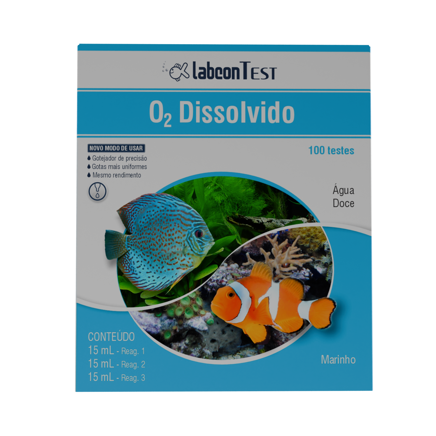 Teste de teor de oxigênio para aquários de água doce e marinhos.